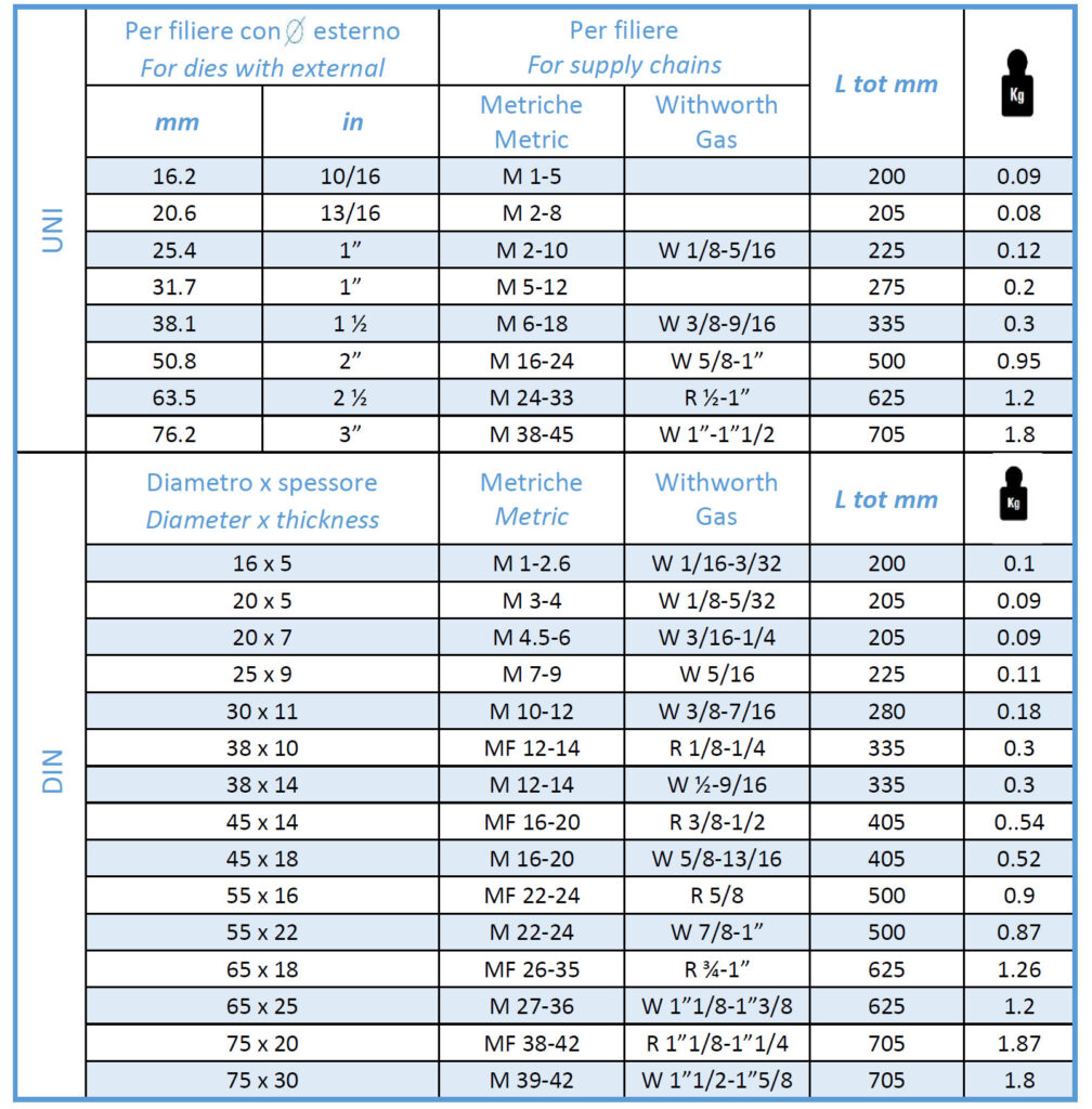 Le operazioni di maschiatura e filettatura assumono, infatti, un’importanza rilevante nelle lavorazioni industriali e in tutte le applicazioni professionali. Per questo è importante dotarsi degli strumenti giusti realizzati solo con i materiali più resistenti. Meccanica Manessi da oltre 50 anni realizza girafiliere estensibili usati per imprimere la rotazione a una filiera durante il lavoro di filettatura da effettuarsi sulla superficie esterna di pezzi cilindrici, quali bulloni, tubi, perni, ecc.