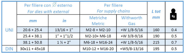 - Corpo in acciaio con leva di manovra per filettature in spazi ridotti