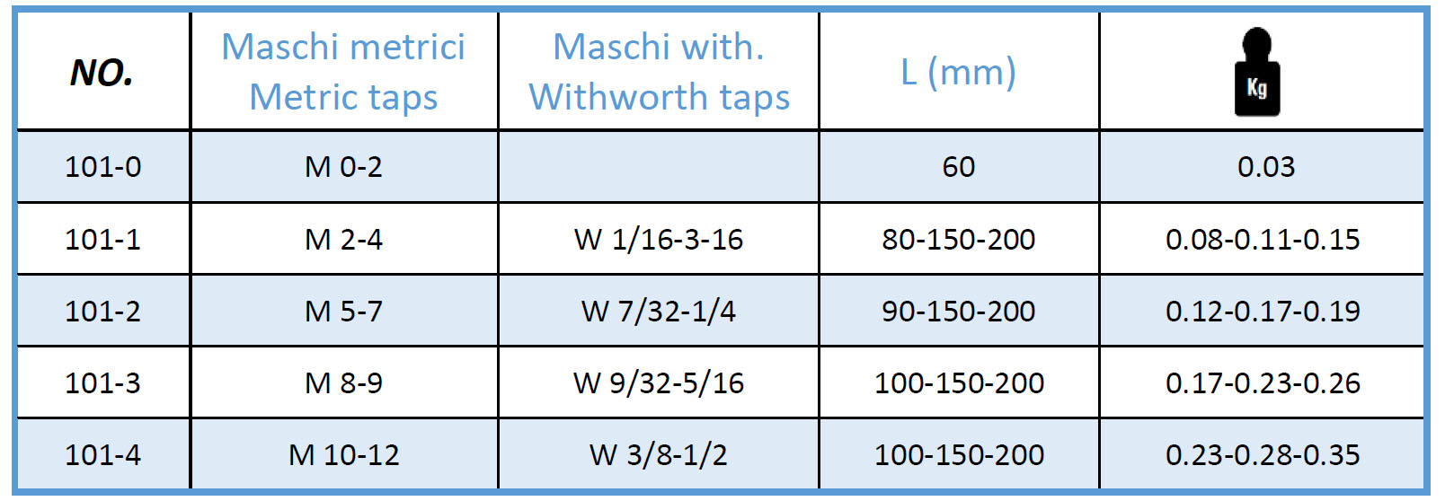 Il fissaggio del maschio è stabile e difficile da svincolare, il che li rende molto convenienti per l’uso in uno spazio ristretto. Si tratta, in sostanza, di una chiave regolabile per manovrare maschi o altri utensili con attacco quadro, per esempio gli alesatori. Si usa a mano e grazie al materiale con cui è realizzata permette un’impugnatura precisa e affidabile.